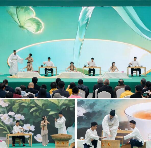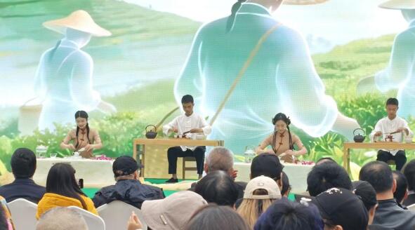 活动现场,情景剧《一盏茶·千年礼》在茶经古卷与水墨茶山的意境中拉开帷幕。象征着“茶圣”陆羽的人物自时光深处走来,吟诵着“茶之为饮,发乎神农……”,为演出奠定了厚重的文化底蕴。学子们以一系列严谨而优美的礼仪动作,静谧地展现了“茶之礼”;随后,通过充满力量与节奏的舞蹈,生动模拟了坦洋工夫红茶的核心制作工艺,将“工夫”背后的匠心精神演绎得淋漓尽致。在“茶之香”篇章中,红茶的卓越品质与风土底蕴悠然弥漫;最终,表演在“茶之道”的升华中圆满收官,全体演员手捧茶盏,完成“敬天地、敬来客、敬世界”的庄严仪式,赢得了现场观众的阵阵掌声。