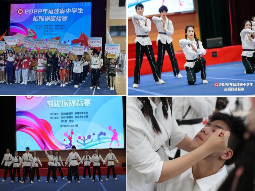 五月的泉州一中开满了蓝花楹,紫色的艳丽和热烈欢迎着全省23支代表队,500多名参赛队员齐聚泉州参加2022年福建省中学生啦啦操锦标赛。经过数次推迟,赛事终于在2023年5月5日在泉州一中(东海校区)拉开帷幕。福安职业技术学校啦啦操队参加了中职组团体赛和两个单项赛的角逐,最终获得团体三等奖、啦啦操街舞二级规定动作第三名和啦啦操校园示范套路第四名三项奖项。