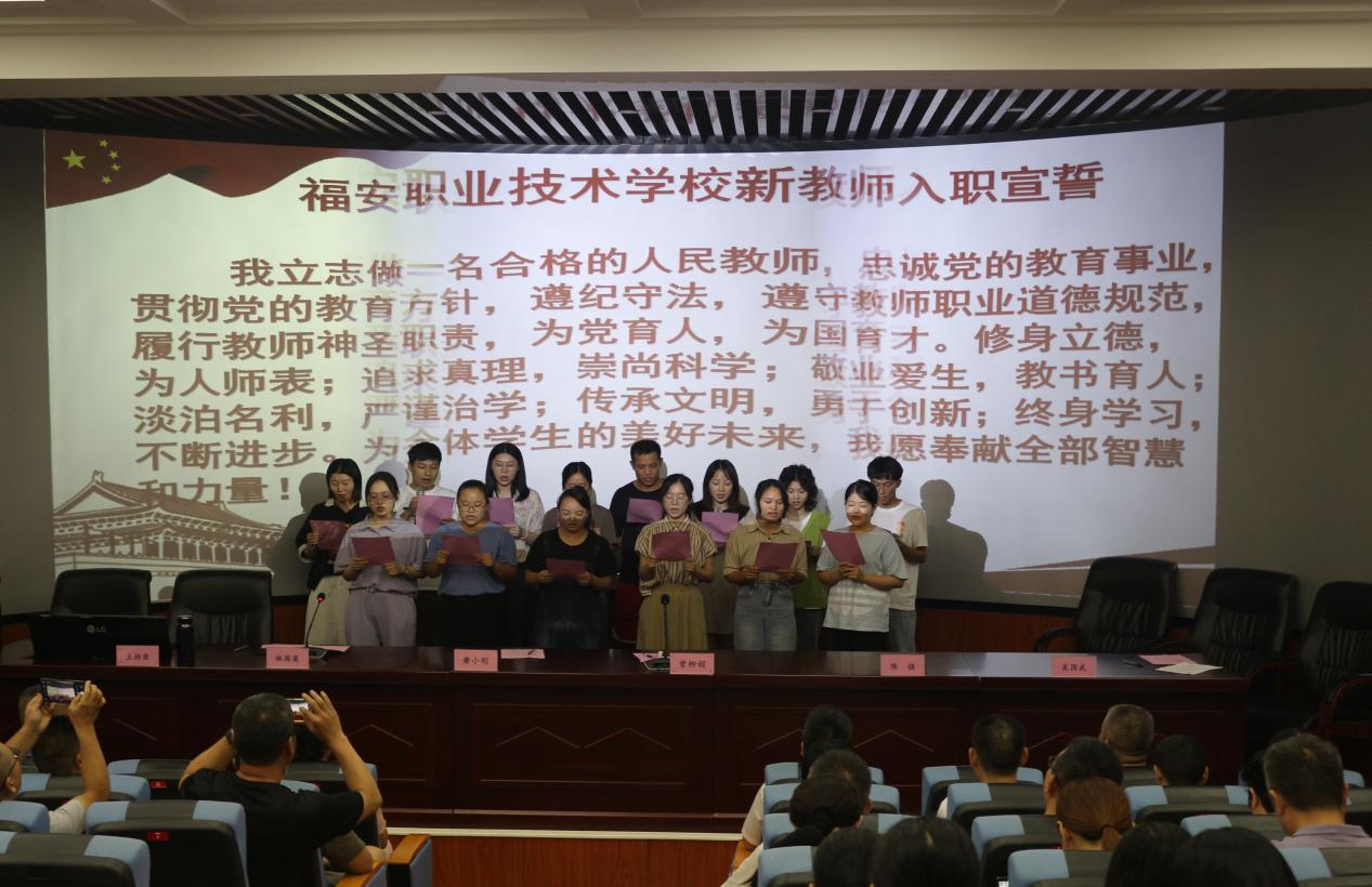今年加入福安职校大家庭的18位新教师在大会上进行了入职宣誓,希望他们在新的岗位上扬帆起航,为职业教育贡献自己的一份力。