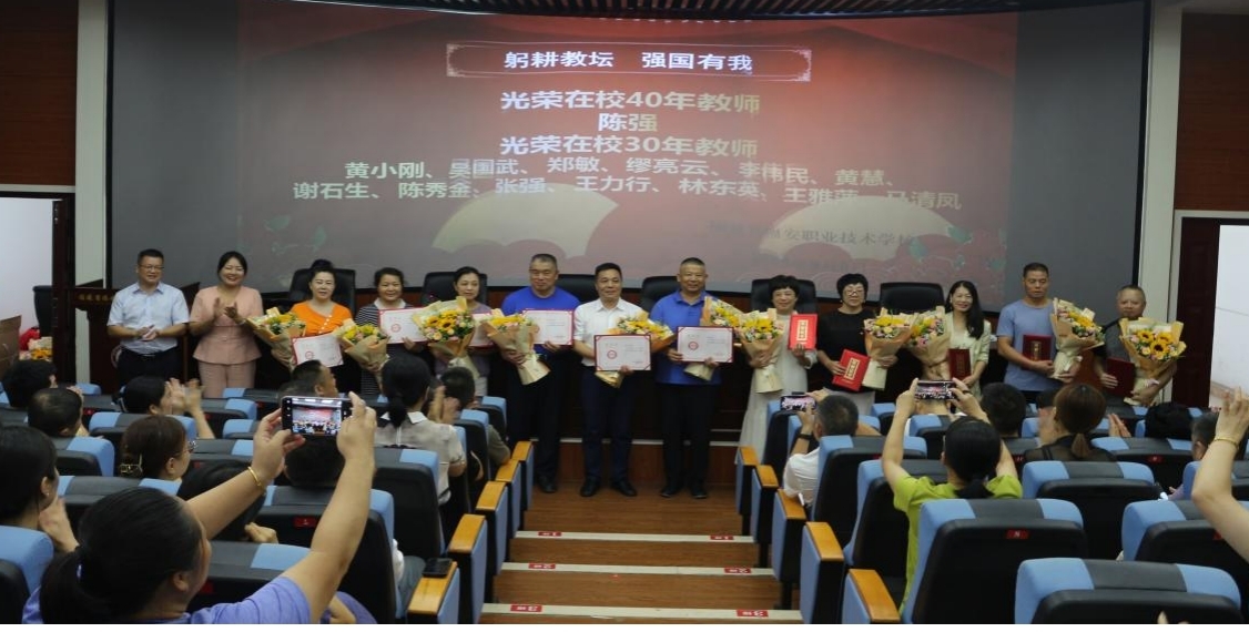 大会上吴国武副书记宣读了在校40年、30年教师名单,这些老教师们把自己的青春都奉献给了职业教育,多年来兢兢业业为学校默默付出。校领导为他们颁发荣誉证书,并向他们表示衷心地感谢。