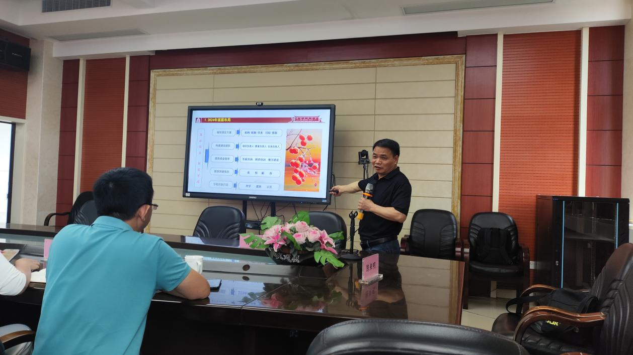 肖育发主任开展了《敢叫日月换新天---2024年高水平专业群建设策略》的专题讲座,重点解读了当前职业教育的相关重要文件政策,系统阐述了基于产业导向的高水平专业群组群逻辑、专业群人才培养方案的核心要素以及专业群课程体系的重构设计,为我校专业群建设开拓了新视野。
