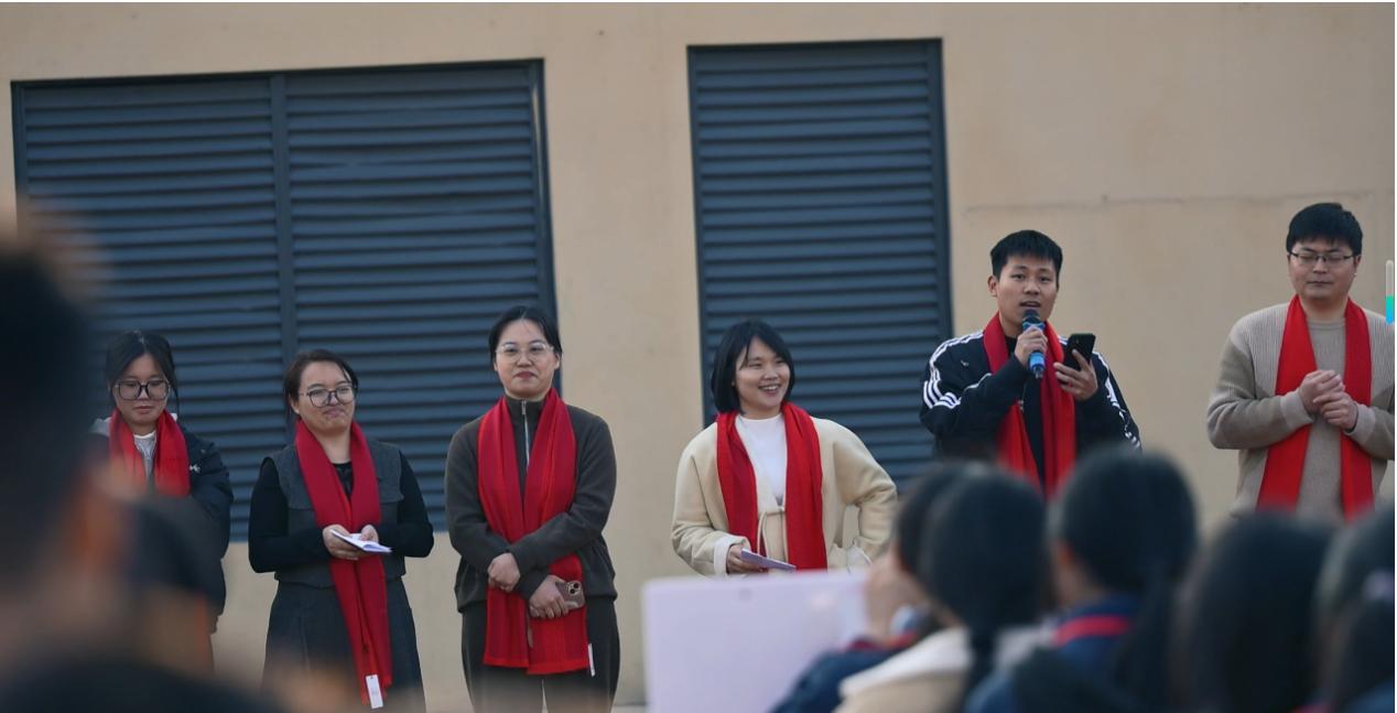 在温馨感人的谢师恩环节中,各班学生代表手捧鲜艳的红围巾,怀着无比崇敬的心情,为辛勤耕耘的恩师们系上这份饱含深情的礼物。一条条红围巾,如同跳动的火焰,传递着学子们对师恩的无限感激。随后,2023级全体班主任以独具学科特色的祝福语,为学子们送上殷殷期盼。