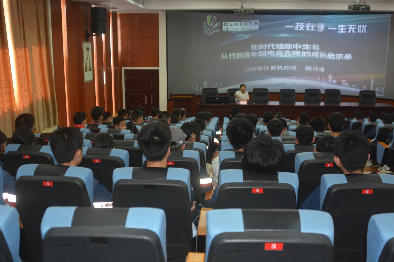 优秀毕业生蔡伟清做 “在时代缝隙中生长—从代码青年到电商先锋的成长启示录”主题分享,以自身奋斗历程为蓝本,为同学们指明职业发展方向。
