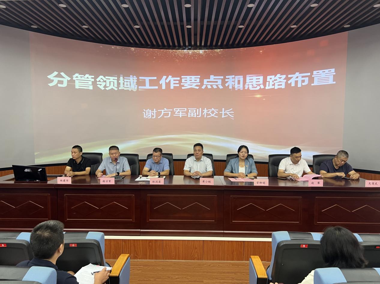 8月21日,校领导班子率先召开行政办公会议,坚持“提早谋划、系统部署、压实责任、确保安全”的原则,全面复盘上学期工作,系统规划新学期党建、教学、科研、安全、德育等重点任务。会议强调,要以争创国家级“双优校”为目标,深化教育教学改革,优化管理服务,推动学校高质量发展。
