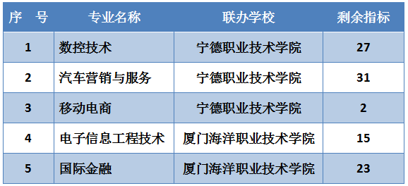 福安职业技术学校截止2019年8月14日,还有以下五年制高职专业剩余计划数,中考投档分在262.5分以上未被普高和高职录取的学生,可通过微信识别下方二维码图片填写信息报名。考生可同时填报一个第一志愿和两个参考志愿,由宁德市招生办投档录取。网上报名时间8月14日至8月20日,录取后电话通知现场报名。