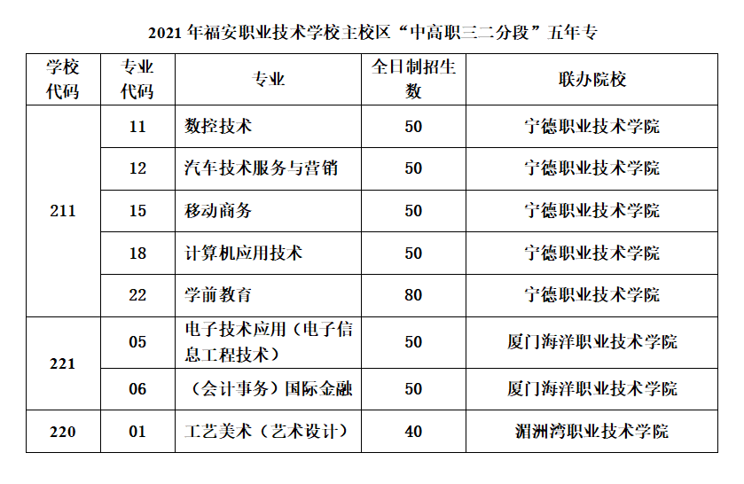 ① “三二分段制”五年专,需第一志愿报考,由宁德市教育局统一切线录取。三年制中职专业优先招收第一志愿报考我校的考生,若招生计划不满,可从第二志愿考生中择优录取。
