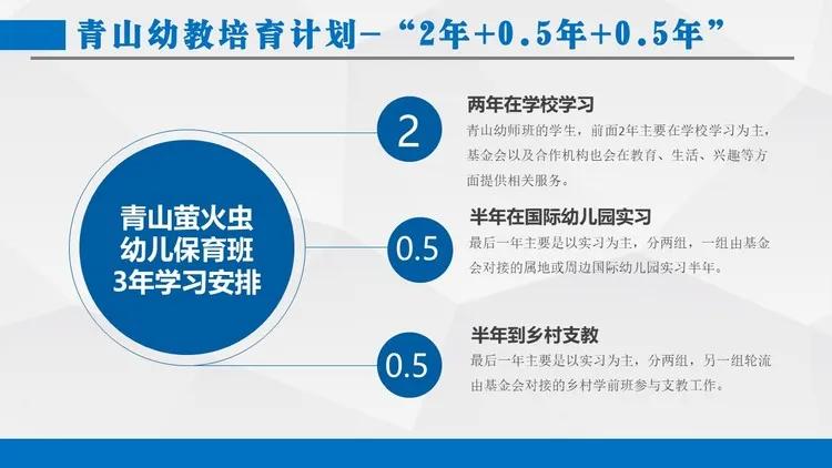 2、最后一年主要以实习为主(要参加高考班除外),半年由基金会对接的属地或周边国际幼儿园实习;另外半年,以自愿为主参与周边乡村幼儿教育的支教工作。