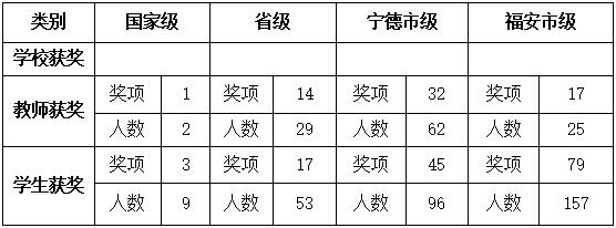 学校现有教职工234人,其中高、中级职称教师100人,特级教师1人,省级名校长培养人1人,省级名师培养人1人,省级专业带头人2人,省职业院校教学创新团队1个,省名班主任工作室1个,宁德市名师(含培养人)4人,宁德市学科(专业)带头人(含培养人)16人,宁德市骨干教师36人。