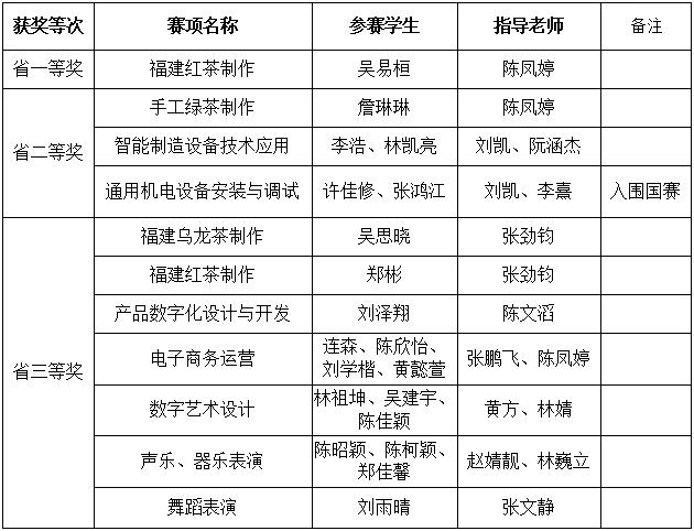 2025年福安职业技术学校学生参加省级技能大赛获奖情况