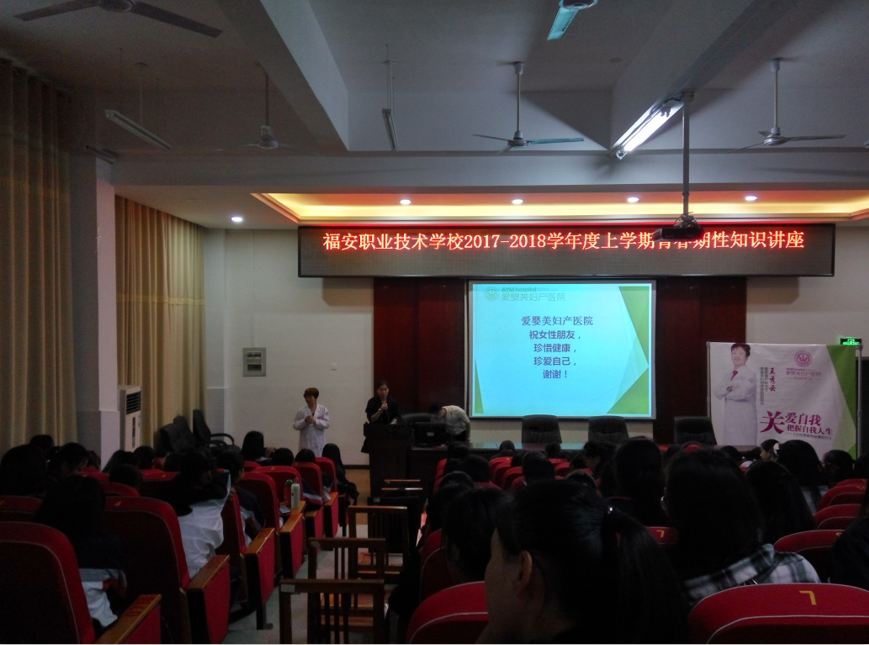 10月27日下午4点,我校特别邀请福安市爱婴美妇产科王秀云主任,在教学楼阶梯教室开展2017-2018学年上学期青春性知识讲座。此次讲座的参加对象是我校17级学前(1)、(2)、(3)、(4)班的女生们。