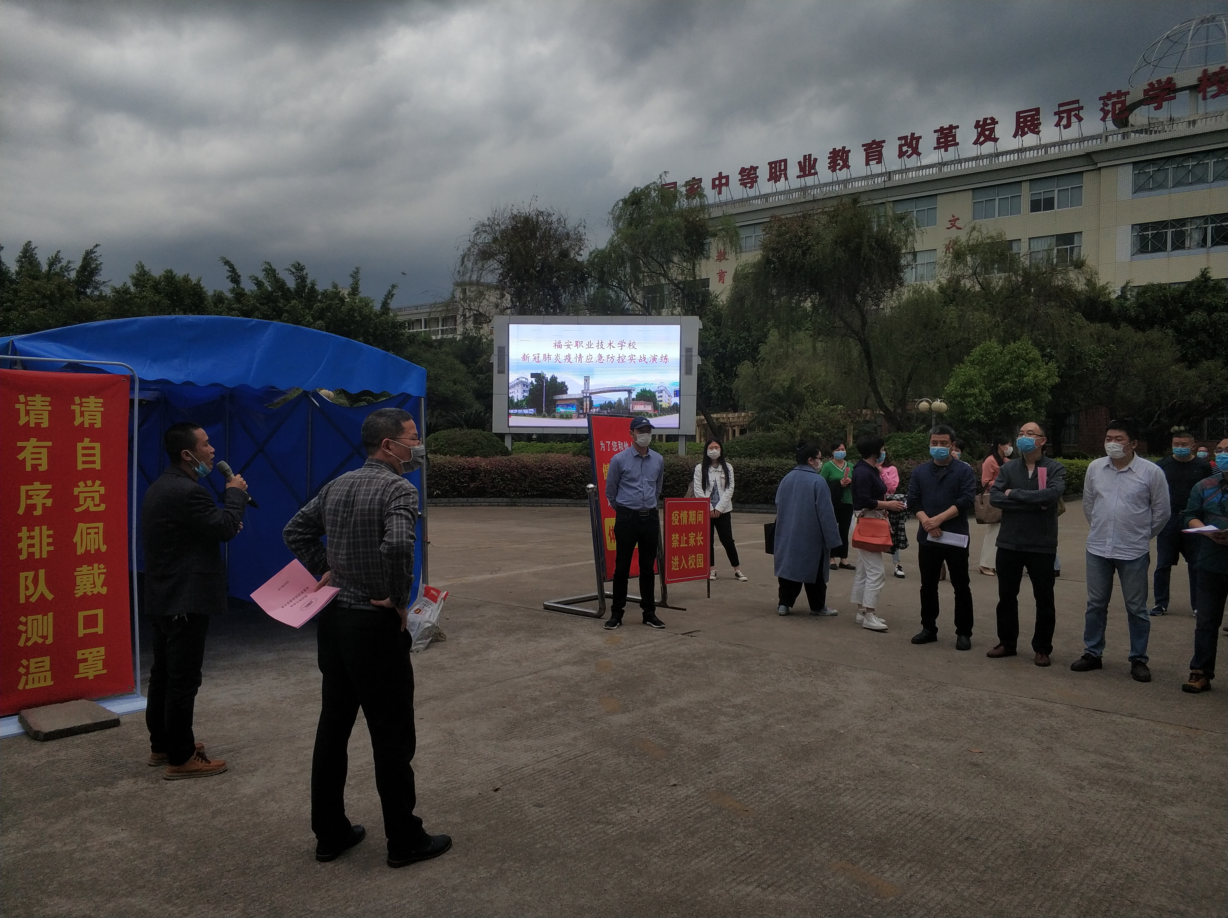演练前,学校根据上级部门的文件精神,结合实际情况制订了《福安职业技术学校新冠肺炎疫情应急防控实战演练方案》,召开了疫情应急防控实战演练部署会,进一步明确疫情应急防控实战演练的目的和演练的各项内容、具体流程以及相关人员的职责。