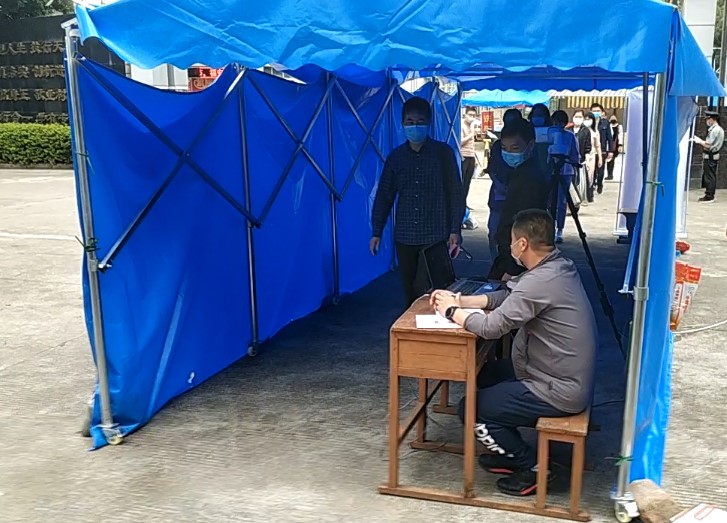 教职员工通过测温门