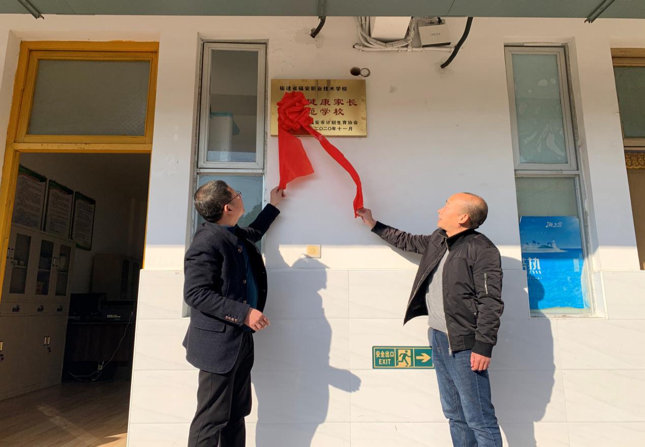 活动中,冯铃国副会长为福安职业技术学校“福安市青春健康家长示范学校”授牌,并与赵斌校长举行了揭牌仪式。