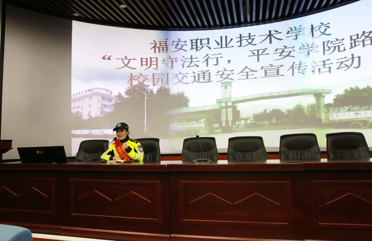 为进一步做好道路交通安全常识的宣传教育,提高学生交通安全意识和交通文明素质,预防道路交通事故发生,让同学们高高兴兴上学,平平安安回家。福安职业技术学校本着以人为本、以防为主的原则,联合交警大队女子护学岗中队到校开展“文明守法行,平安学院路”交通安全宣传活动。