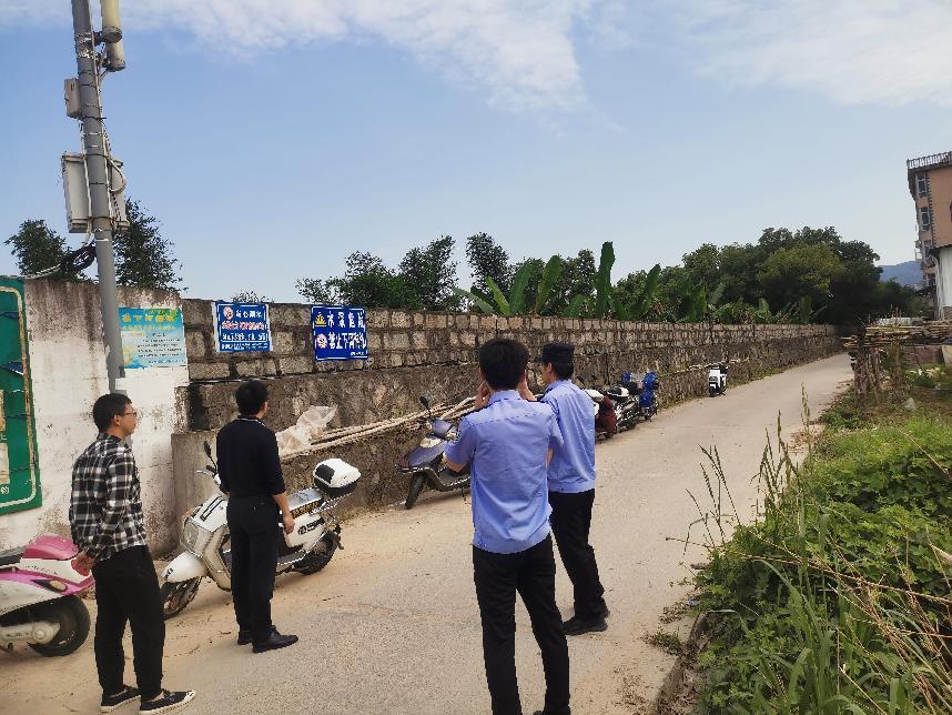 排查组一行在查看附近水域