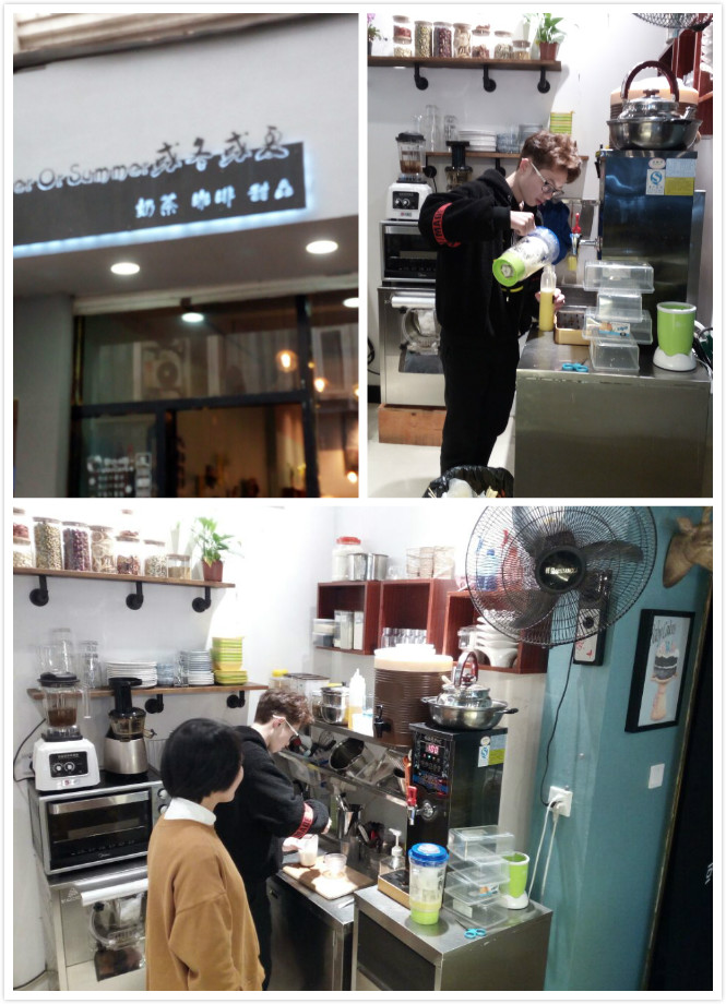年11月我校许惠芳老师在福安市或冬或夏奶茶店看望顶岗实习学生。