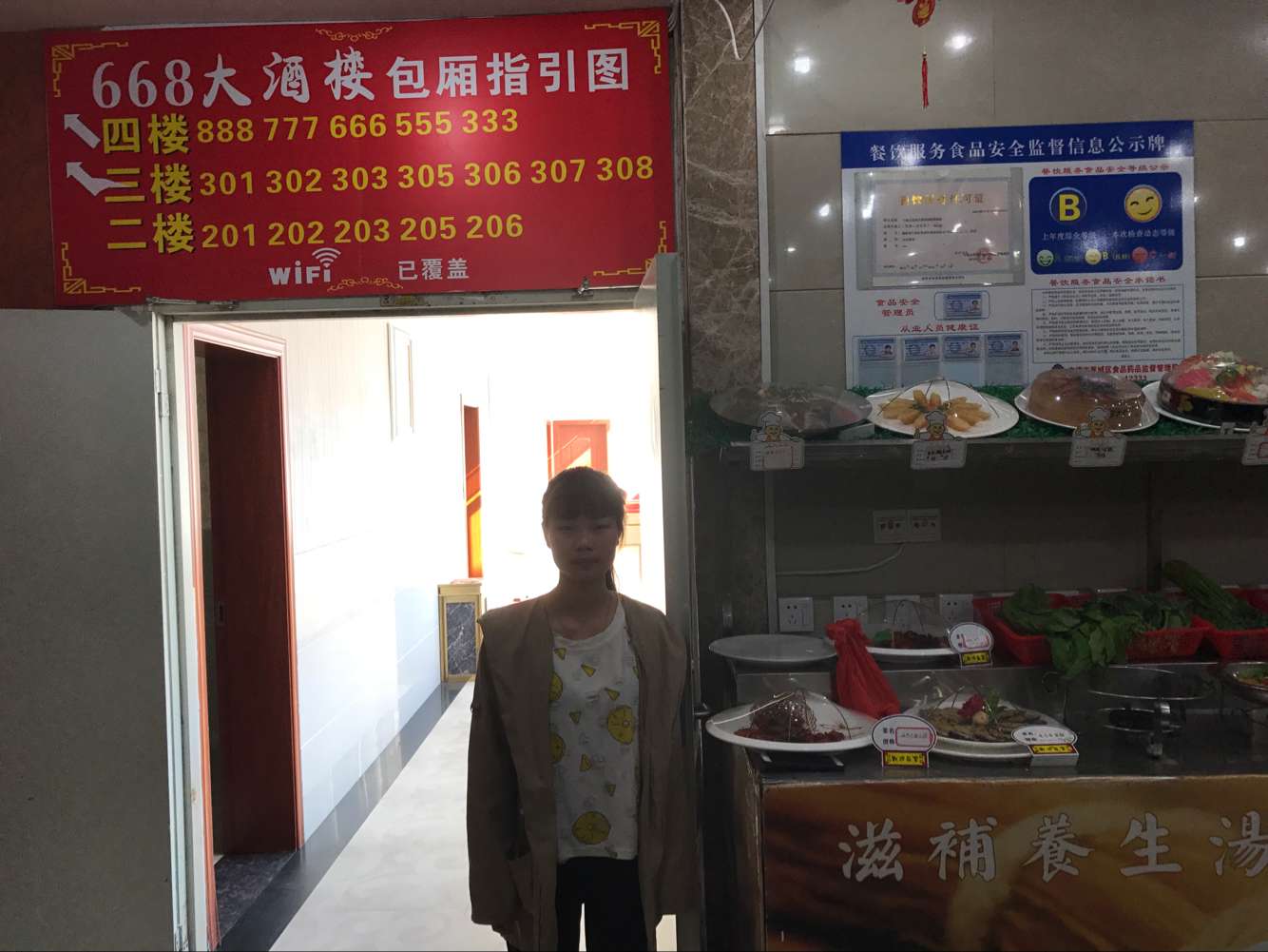年3月我校傅丽敏老师在福安市668大酒楼看望顶岗实习学生。