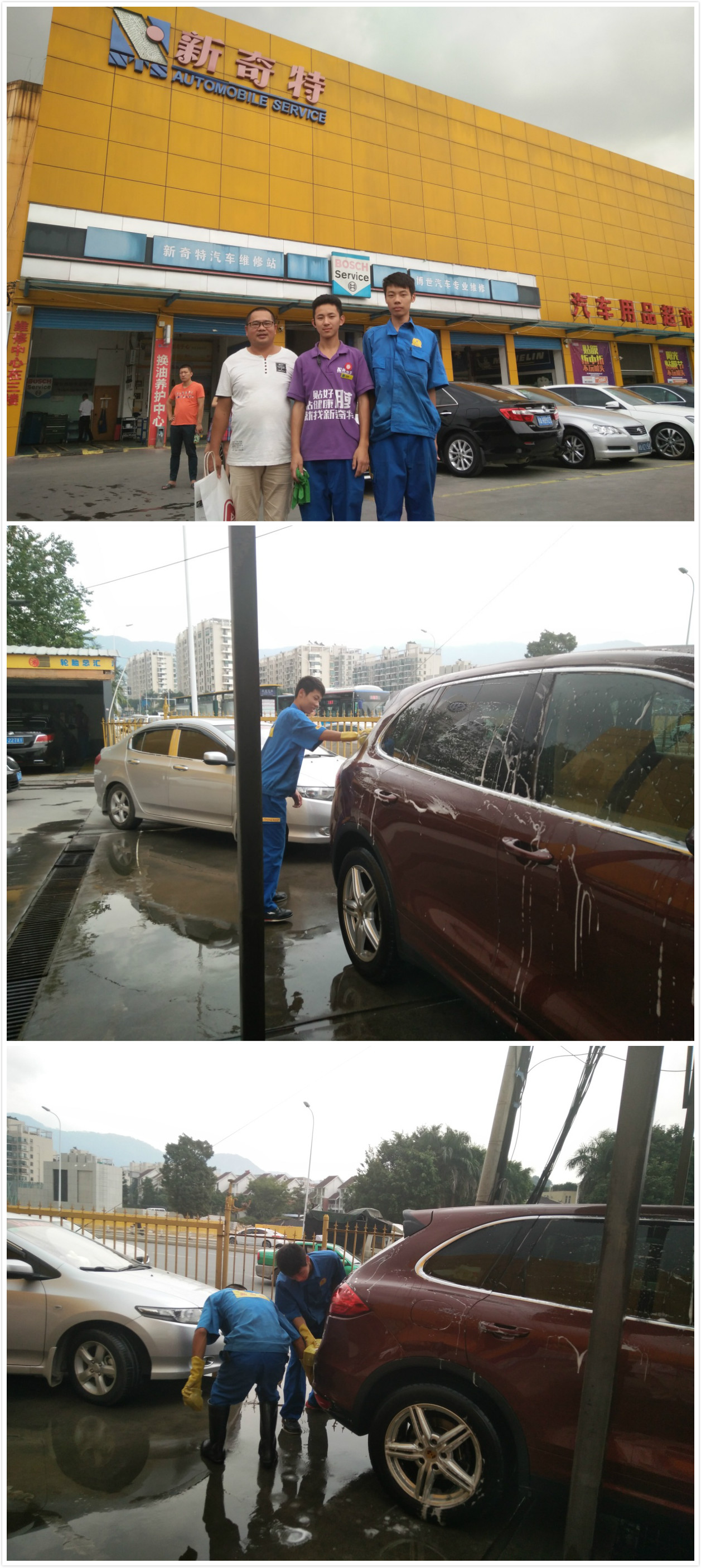 2017年4月我校吴朋兴老师在福建新奇特车业服务有限公司新店看望顶岗实习学生。