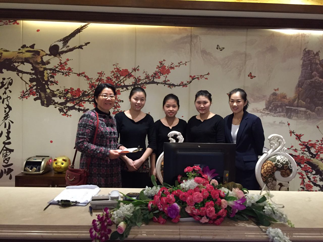 2017年4月我校林羽老师在福安市碧波美容会所看望顶岗实习学生。