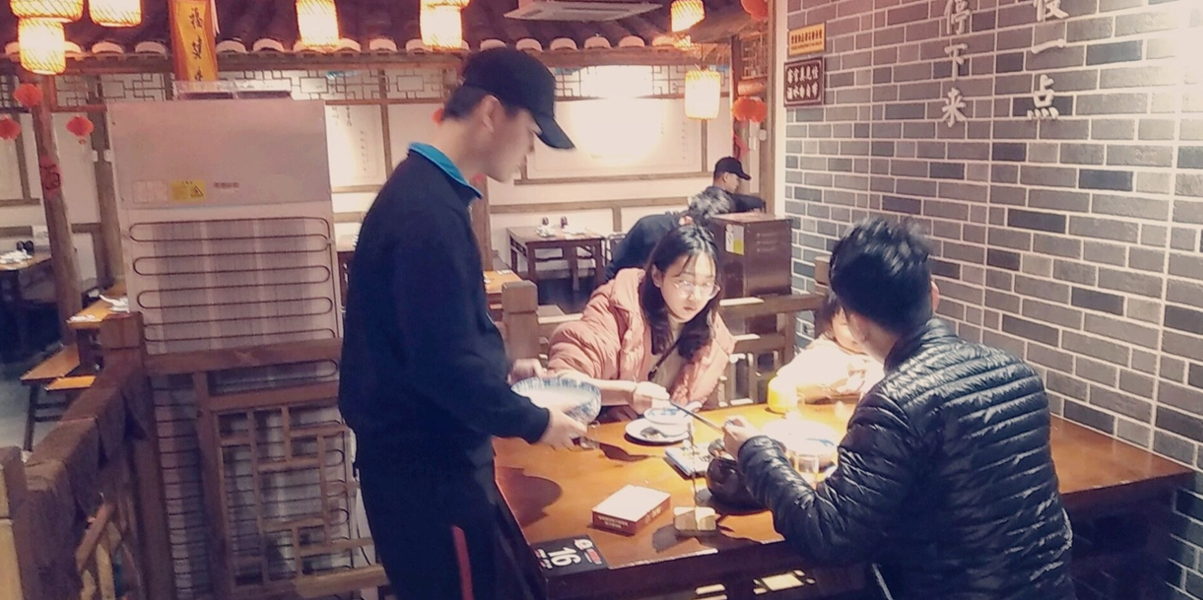 图(2):沈少松同学在为顾客提供点餐服务