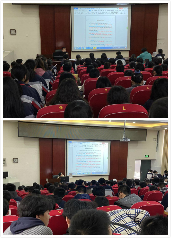 第二环节陈泽华副主任、郑林靓老师分别介绍了学生顶岗实习的整个过程,详细讲解顶岗实习及材料填写的注意事项及要求,包括《学生顶岗实习确认书》、《学生自行联系实习单位申请表》、《学生顶岗实习协议书》、《学生顶岗实习手册》等,帮助同学们熟悉流程、并现场为学生解答疑惑,确保实习材料规范填写并及时上交。