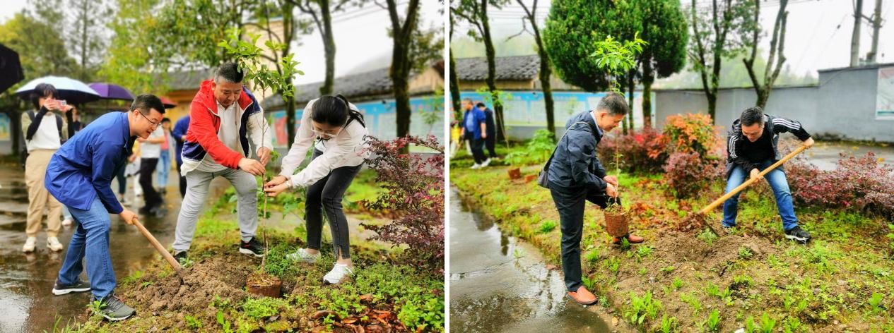 植树环节:组内成员领取树苗及工具后前往相应耕地锄地植树。通过躬行农事,深入体验缺衣少食的六七十年代生活,在艰辛的劳动中追忆峥嵘岁月,感受党的领导带来生活条件翻天覆地的变化。