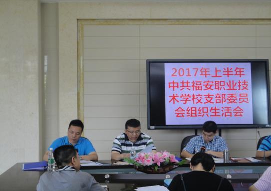为推进“两学一做”学习教育的常态化制度化,按照福安市教育局党组、党委的安排部署,福安职业技术学校支部于2017年7月27日上午在校会议室召开了2017年上半年组织生活会。会议由吴国武副书记主持,校级班子成员、党支部支委成员、各党小组组长参加了会议。会议第一阶段李成文校长、书记代表学校班子作了对照检查发言,查摆出了2017年上半年班子工作中存在的问题,并分析了原因,提出了整改的措施,随后与会的校级班子成员及支委分别进行了对照检查发言;第二阶段与会同志开展批评与自我批评,同志们针对自己和别的同志在工作中存在的缺点与不足坦诚布公地进行交流与提醒,真诚提意见,真心为发展,会议取得了良好的成效。(党支部供稿)