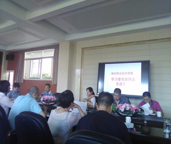 福安职业技术学校支部组织校行政班子学习廖俊波先进事迹