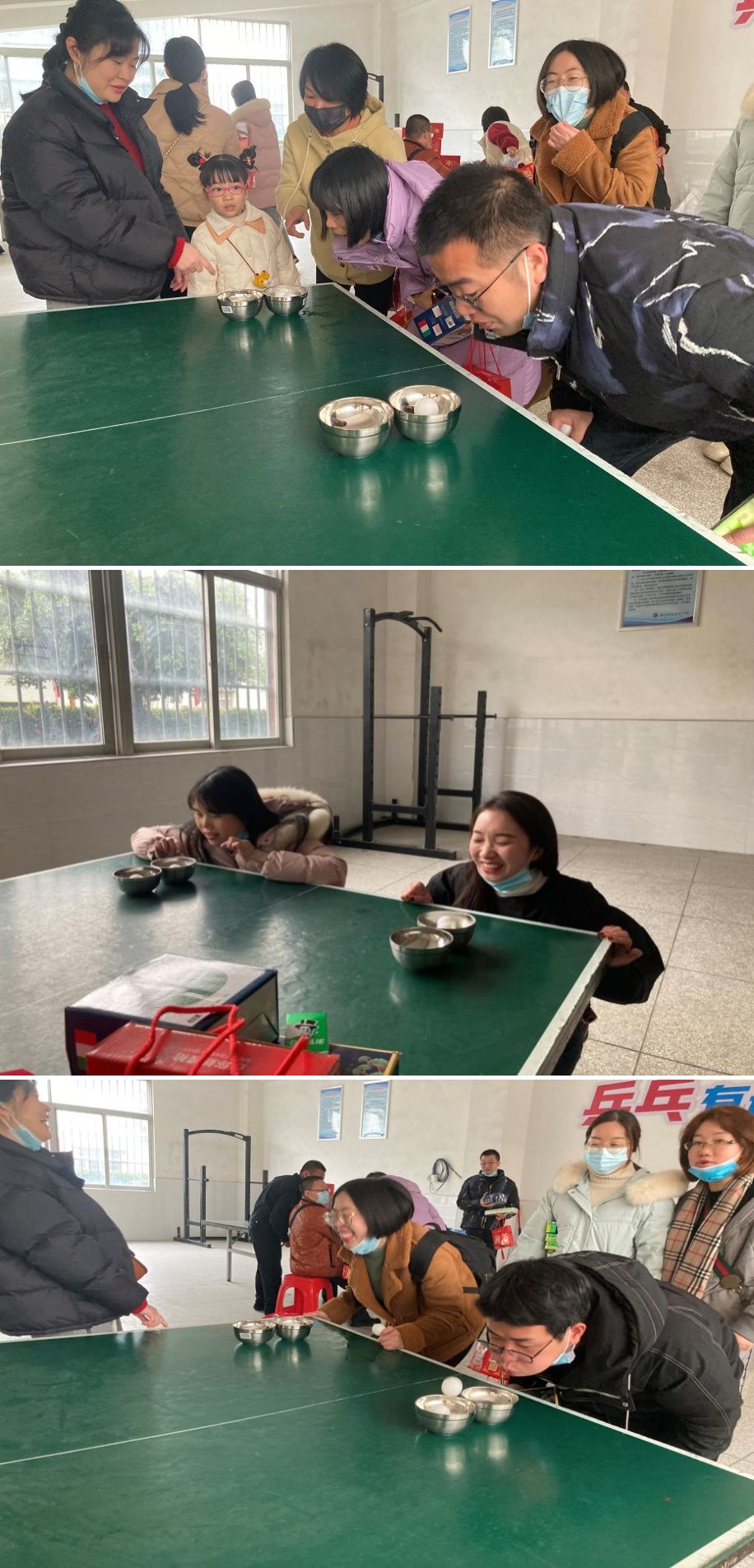 活动项目金球辘辘(吹球入碗),金球辘辘场活动场地,老师们正在调整气息,让两个小而轻的乒乓球搬家,调皮的乒乓球,总是活蹦乱跳,不听使唤,当掌声响起那一刻,老师们的脸上已洋溢着成功的喜悦。