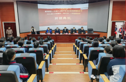 福安职业技术学校陈强副校长致辞,对福安“幼儿照护”证第一批的学员提出了要求与期望,并明确指出随着国家相关政策的落实,政府各项配套措施的推进,托育的春风迎面而来,托育的号角已吹响,同学们是黄埔军校的第一期学员,未来,在学校的发展历程上会有你们光辉一刻,那从现在开始,就让我们跟着党走,绘托育蓝图,做一名合格的幼儿照护者!