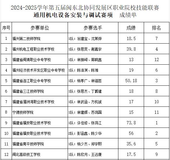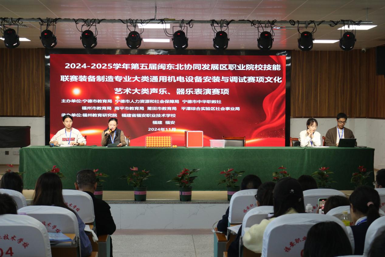 为贯彻落实《职业教育法》,积极备战全省职业技能大赛,推进闽东北协同发展区职业教育交流与合作,促进赛教融合,加强学生职业能力的培养,切实提高职业教育教学质量,2024年11月8日至11日,2024-2025学年第五届闽东北协同发展区职业院校技能联赛“声乐、器乐表演”与“通用机电设备安装与调试”两大赛项在福建省福安职业技术学校隆重举行。此次联赛汇聚了来自区域内39所职业院校的65支参赛队伍,共计206名优秀学子,共同展现了职业院校学生在艺术与技术领域的卓越风采。