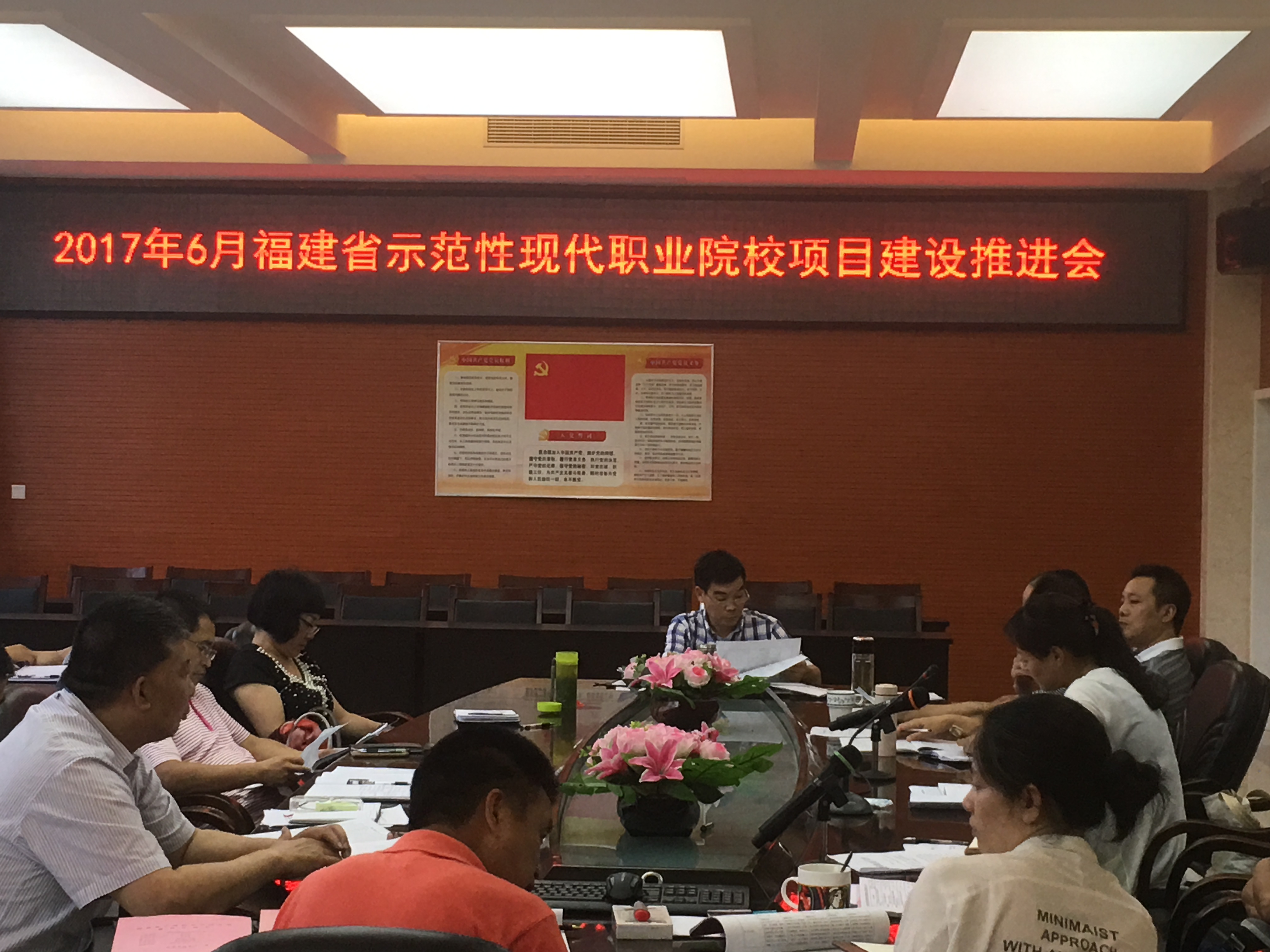 2017年6月26日,我校召开省示范性现代职业院校项目建设推进会,会议由李成文校长主持。会上,各项目负责人分别总结汇报了上半年省示范校建设的工作成效,主要有以下几个方面: