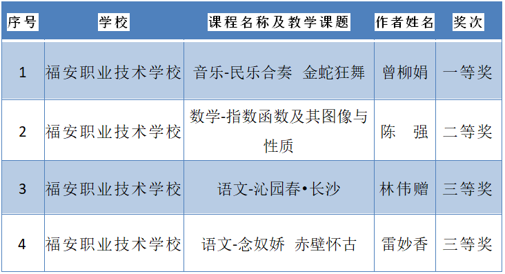 热烈祝贺福安职业技术学校教师参加宁德市中职教育优质课评选活动获得1金1银2铜的佳绩
