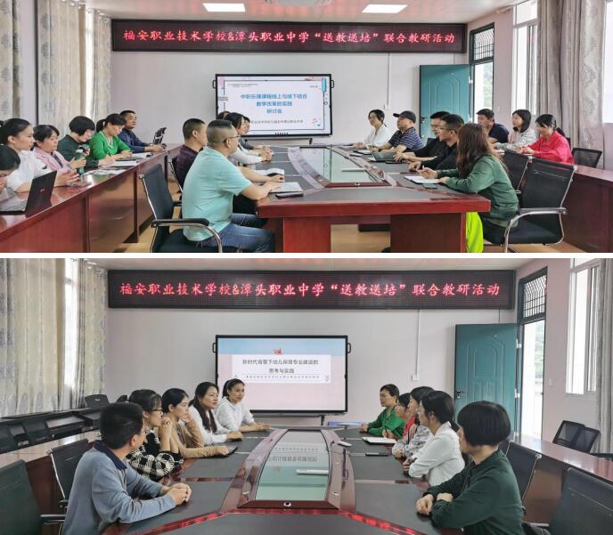 2022年5月27日,我校12名骨干教师应邀来到福安市潭头职业中学开展送教送培活动。本次活动在曾柳娟副校长的带领下,选派了宁德市中职(专业)学科带头人林建书、林英、陈美玉、陈辉以及骨干教师杨世忠、吴晓辉、谢石生、陈灼娇等8位教师,为福安市潭头职业中学学生带去了8节公开课,宁德市中职教学名师曾柳娟副校长做了题为《中职乐理课程线上与线下结合的教学改革探索与实践》的讲座,课堂教学精彩纷呈、教研交流研讨积极热烈,整个过程有序有趣,开启了思维碰撞。