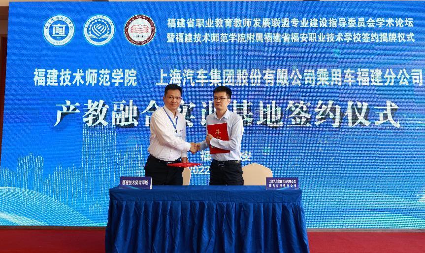 福建省职教师资培训中心与上海汽车集团股份有限公司乘用车福建分公司、青拓集团有限公司、宁德长盈新能源技术有限公司签订产教融合实训基地。