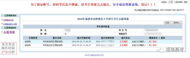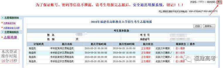 如果没有问题了,点击页面右上角的“安全退出”按钮,退出网上填报志愿系统,关闭填报志愿的浏览器页面,同时关闭浏览器。