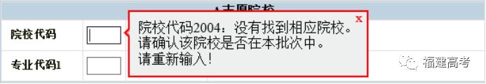如果不是,或出现红色字体提示的“无效院校”或“无效专业”,说明填错了代号,须按正确的代码更正。考生在输入填报过程中如果有误,系统会提示以下信息: