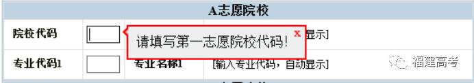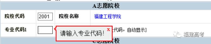 b. 输入专业代码,系统自动显示专业名称(专业代码以及专业名称请查阅《福建省高职院校分类考试招生计划》)