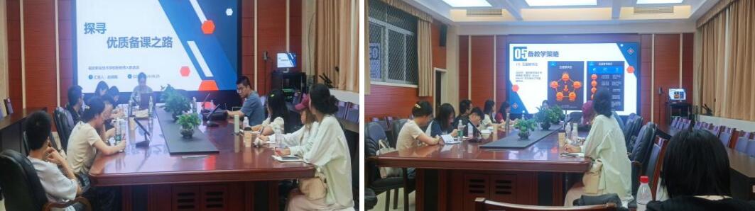 音乐教研组组长、宁德市名师培养人赵婧靓老师以《探寻优质备课之路》为主题,从分析教材、分析学情、制订三维目标、设计教法和学法等方面对新任教师进行备课指导,并以自己参加全国职业院校教师教学能力比赛的教学设计为例阐述教案的撰写技巧。