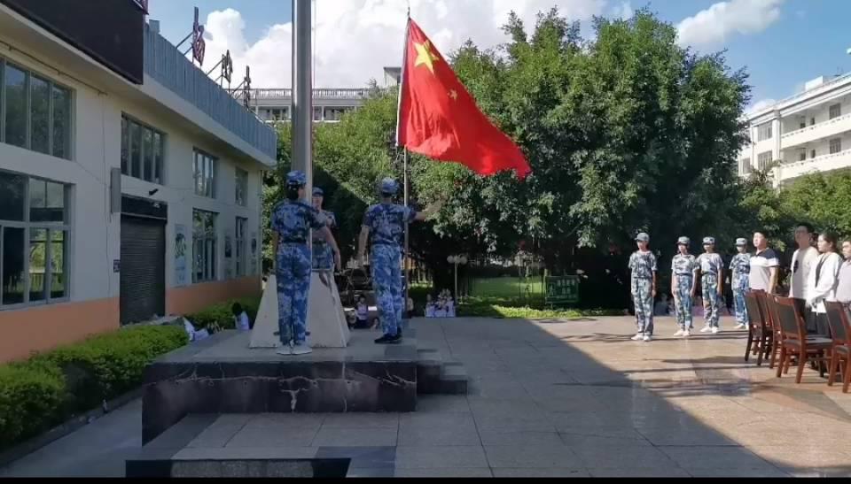 教官表演之后,我校国旗班表演。同学们各个雄赳赳,气昂昂,意气风发,展示着国旗班的英姿飒爽。