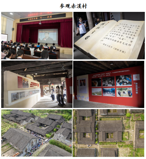 抵达福鼎赤溪村,通过参观中国扶贫第一村村情展示厅,了解赤溪村扶贫历程,同学们感受到赤溪村人民自强不息、砥砺前行的精神;走进赤溪村人民会场,观看习总书记与赤溪村民的对话视频,同学们又为习总书记对少数民族贫困地区的深切关怀而感动;参观赤溪村杜家堡古民居,同学们则沉浸在杜家堡深厚的古村落文化、杜氏家族文化和建筑文化的魅力里;参观蝴蝶生态园,同学们不仅拓宽了视野,深入了解了斑蝶、凤蝶、粉蝶等多种蝴蝶的特性和知识,还为大自然的鬼斧神工与生命的奇妙而赞叹不已;探索峡谷运动乐园,同学们在跋山涉水之中深刻体会到红军不畏艰难的精神。