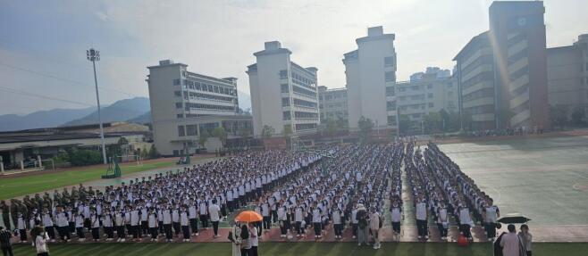 9月8日上午,军训开营仪式在庄严的升旗仪式中拉开序幕。校级班子、坂中乡武装部、教官、年段长、班主任及全体新生参加了本次开营仪式,开营仪式由政教处副主任钟声主持。