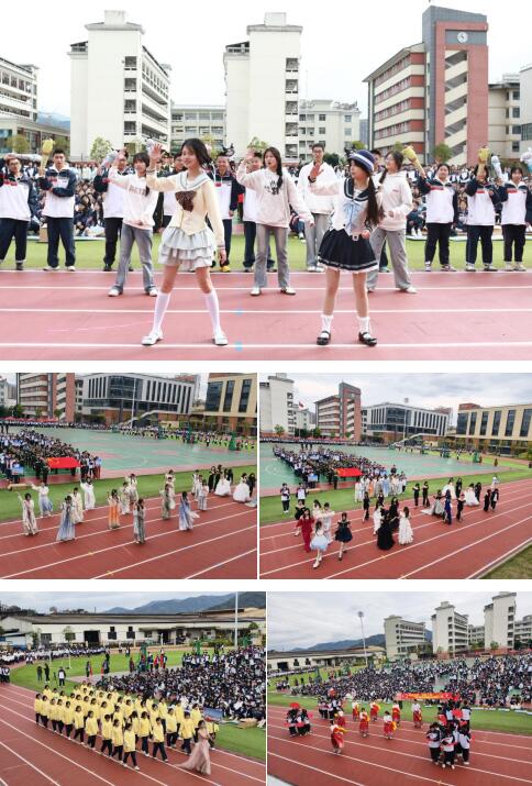 18日上午,伴随着《运动员进行曲》的激昂旋律,运动会正式拉开帷幕。国旗方阵、裁判员方阵、学生会方阵、督导队方阵及52个班级方阵依次入场表演。每个班级都独具匠心,他们身着特色服装,喊着响亮的口号,迈着整齐的步伐,以各具特色的表演形式展现着班级的独特风采与团结精神,整个操场洋溢着青春的活力与激情。