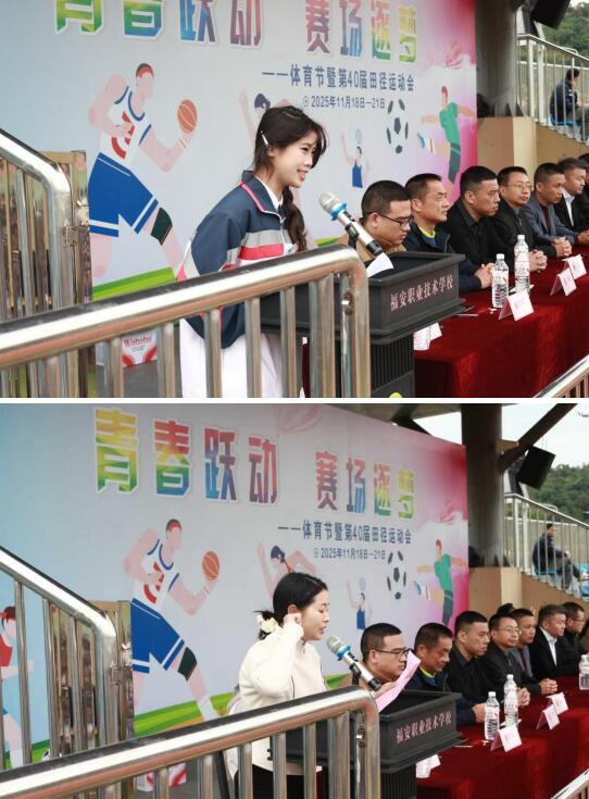 最后,在热烈的掌声中,校党总支书记黄小刚宣布:“福建省福安职业技术学校2025年体育节暨第40届田径运动会开幕!”至此,本届运动会各项赛事正式拉开战幕。
