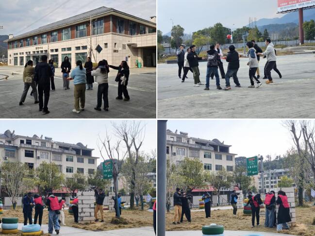 下午活动聚焦团队协作与创造力提升。教师们首先在营地负责人赵董事长的介绍下,参观了“习爷爷在宁德的故事”研学馆,通过图文展览感悟领袖精神,厚植教育情怀。随后,旱地冰壶对抗赛、鼓动人心、真人CS对抗赛三大项目在分组后轮番开展:旱地冰壶项目中教师们分组竞技,在策略布局与精准投掷中体会“静中有动”的协作智慧;鼓动人心项目通过平衡鼓面颠球任务,强化了团队默契与目标管理能力;真人CS战况激烈,在模拟战场中,教师们分工协作、灵活应变,展现德育工作者的果敢与担当。活动现场笑声与掌声交织,教师们在挑战中突破自我,在协作中增进信任。