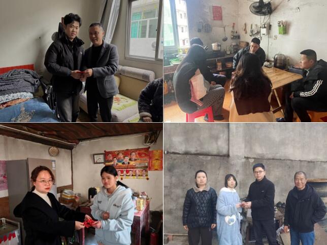 在学校统一组织下,我校党总支书记黄小刚、校长曾柳娟带领校领导班子成员,联合政教处、心理中心工作人员、各年段长以及班主任,共同组成6个慰问小组,深入学生家中,为他们送去学校的关怀与新春祝福。
