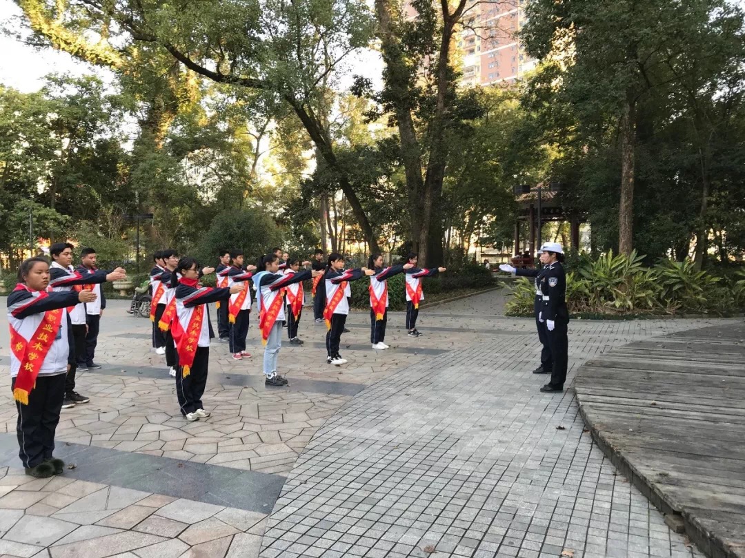 我校17级志愿者前往富春公园女子护学岗中队学习交通知识