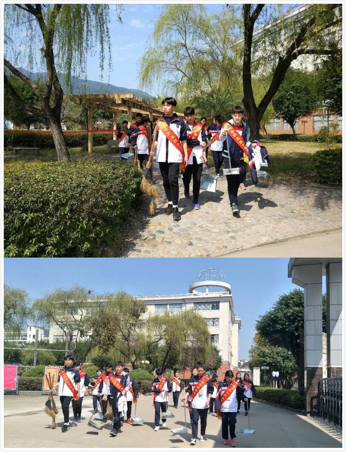 志愿者们在清扫道路