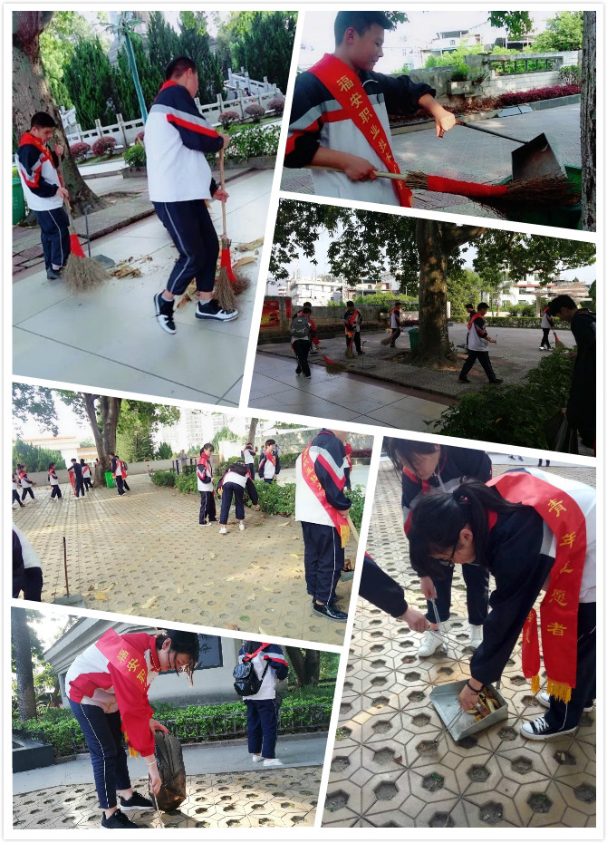 同学们在打扫烈士陵园