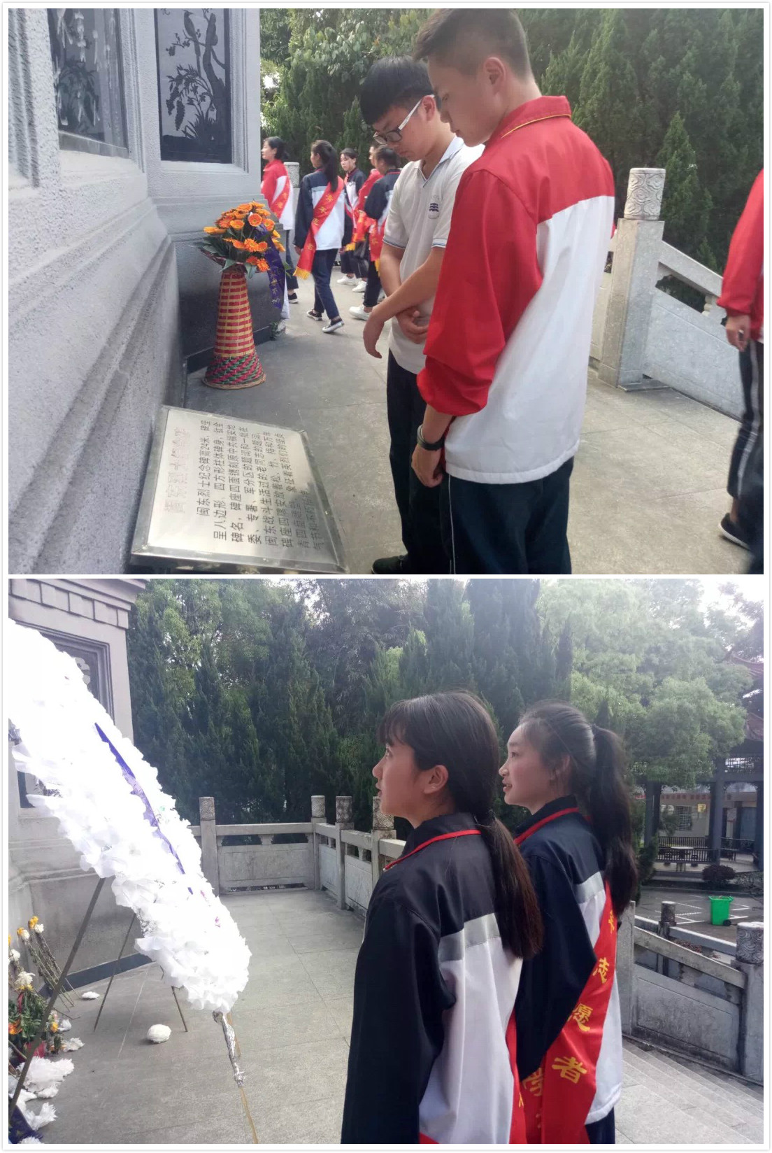 我校师生在烈士墓前默哀